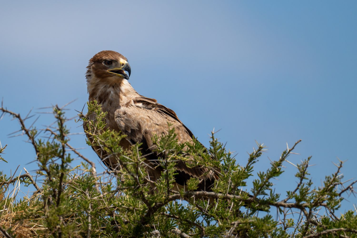 A tawny eagle atop its nest in an acacia tree. Serengeti National Park, Tanzania. 03 July 2025. 600mm, f/6.3, 1/3200s